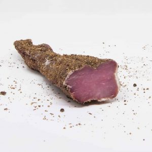 La Coppa Stagionata, o cabecero de lomo, es un embutido elaborado con el músculo del cuello de cerdo. Para su preparación se seleccionan las partes más magras y sabrosas del músculo, ubicadas entre la unión de la cabeza y la cuarta costilla del yugo, la cabeza-cuello.