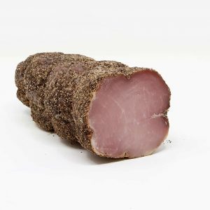 Para la elaboración de nuestra  «Soppressata»,  se usa una receta familiar y solo las cabezas de cerdo .Una mezcla singular de especias que incluyen: pimienta, cilantro, canela, clavo, nuez moscada, pimienta de Jamaica, flor de macis y jengibre, hábilmente equilibrado.